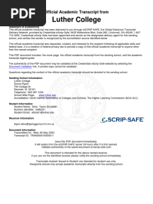 Luther College Unofficial TranscriptPDFLuther College Unofficial TranscriptAdded by api-5480343280 ratingsfunction cn(e,t){var n=e+t;return n<=0?0:Math.round(e/n*100)}% found this document usefulSave Luther College Unofficial Transcript for later