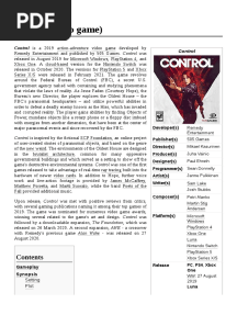 Control Is A 2019 Action-Adventure Video Game Developed byPDFControl Is A 2019 Action-Adventure Video Game Developed byAdded by ramin0 ratingsfunction cn(e,t){var n=e+t;return n<=0?0:Math.round(e/n*100)}% found this document usefulSave Control Is A 2019 Action-Adventure Video Game Developed by for later