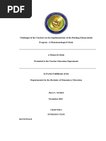 Teachers' Challenges in Reading Program ImplementationPDFTeachers' Challenges in Reading Program ImplementationAdded by Joyce Secobos0 ratingsfunction cn(e,t){var n=e+t;return n<=0?0:Math.round(e/n*100)}% found this document usefulSave Teachers' Challenges in Reading Program Implementation for later