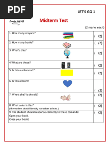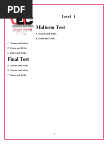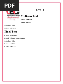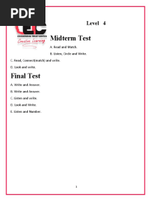 Midterm Test: Let'S Go 1PDFMidterm Test: Let'S Go 1Added by Hanan badran100% (4)function cn(e,t){var n=e+t;return n<=0?0:Math.round(e/n*100)}% found this document usefulSave Midterm Test: Let'S Go 1 for later