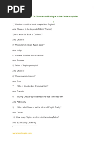 Quiz on Chaucer and Canterbury TalesPDFQuiz on Chaucer and Canterbury TalesAdded by Anu0 ratingsfunction cn(e,t){var n=e+t;return n<=0?0:Math.round(e/n*100)}% found this document usefulSave Quiz on Chaucer and Canterbury Tales for later