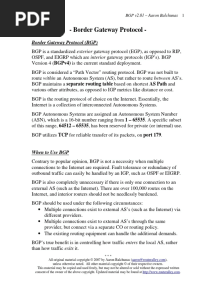 Border Gateway Protocol (BGP)PDFBorder Gateway Protocol (BGP)Added by Subbu0 ratingsfunction cn(e,t){var n=e+t;return n<=0?0:Math.round(e/n*100)}% found this document usefulSave Border Gateway Protocol (BGP) for later