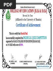 Certificate For - ONLINE G.K. QUIZ COMPETITIONPDFCertificate For - ONLINE G.K. QUIZ COMPETITIONAdded by Recoth Paul0 ratingsfunction cn(e,t){var n=e+t;return n<=0?0:Math.round(e/n*100)}% found this document usefulSave Certificate For - ONLINE G.K. QUIZ COMPETITION for later