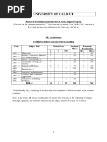 University of Calicut 2004 B.arch Syllabus 1.combined 1st & 2nd SemesterPDFUniversity of Calicut 2004 B.arch Syllabus 1.combined 1st & 2nd SemesterAdded by shemi0 ratingsfunction cn(e,t){var n=e+t;return n<=0?0:Math.round(e/n*100)}% found this document usefulSave University of Calicut 2004 B.arch Syllabus 1.combined 1st & 2nd Semester for later