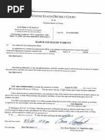 EXCLUSIVE: Warrant and Property Receipt From Mar-a-Lago RaidPDFEXCLUSIVE: Warrant and Property Receipt From Mar-a-Lago RaidAdded by Human Events100% (14)function cn(e,t){var n=e+t;return n<=0?0:Math.round(e/n*100)}% found this document usefulSave EXCLUSIVE: Warrant and Property Receipt From Mar-a-Lago Raid for later