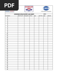 Confined Space LogsheetPDFConfined Space LogsheetAdded by Prajnay Shetty0 ratingsfunction cn(e,t){var n=e+t;return n<=0?0:Math.round(e/n*100)}% found this document usefulSave Confined Space Logsheet for later