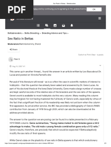 Sex Determination in BettasPDFSex Determination in BettasAdded by Crunch 690 ratingsfunction cn(e,t){var n=e+t;return n<=0?0:Math.round(e/n*100)}% found this document usefulSave Sex Determination in Bettas for later