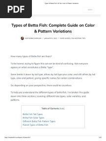 Types of Betta Fish - All Tail, Color, & Pattern VariationsPDFTypes of Betta Fish - All Tail, Color, & Pattern VariationsAdded by Crunch 690 ratingsfunction cn(e,t){var n=e+t;return n<=0?0:Math.round(e/n*100)}% found this document usefulSave Types of Betta Fish - All Tail, Color, & Pattern Variations for later