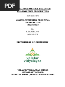 Study of Colligative Properties ProjectPDFStudy of Colligative Properties ProjectAdded by Mithun R.0 ratingsfunction cn(e,t){var n=e+t;return n<=0?0:Math.round(e/n*100)}% found this document usefulSave Study of Colligative Properties Project for later