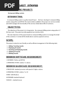 Python-Based Restaurant Billing SystemPDFPython-Based Restaurant Billing SystemAdded by Prem0 ratingsfunction cn(e,t){var n=e+t;return n<=0?0:Math.round(e/n*100)}% found this document usefulSave Python-Based Restaurant Billing System for later