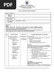 Daily Science Lesson Plan: Heterogeneous MixturesPDFDaily Science Lesson Plan: Heterogeneous MixturesAdded by Sharmaine Ramirez100% (2)function cn(e,t){var n=e+t;return n<=0?0:Math.round(e/n*100)}% found this document usefulSave Daily Science Lesson Plan: Heterogeneous Mixtures for later