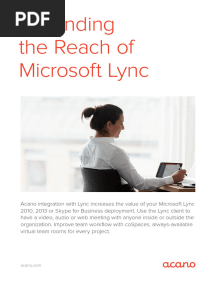 Acano Lync Integration Solution Sheet April2015PDFAcano Lync Integration Solution Sheet April2015Added by WT Synergy0 ratingsfunction cn(e,t){var n=e+t;return n<=0?0:Math.round(e/n*100)}% found this document usefulSave Acano Lync Integration Solution Sheet April2015 for later