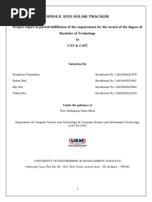 Single Axis Solar Tracker Project ReportPDFSingle Axis Solar Tracker Project ReportAdded by Rebati Bali0 ratingsfunction cn(e,t){var n=e+t;return n<=0?0:Math.round(e/n*100)}% found this document usefulSave Single Axis Solar Tracker Project Report for later