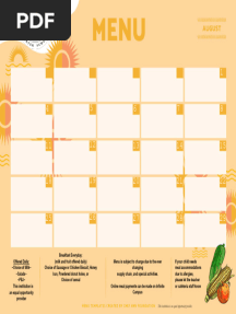 August MenusPDFAugust MenusAdded by chad smith0 ratingsfunction cn(e,t){var n=e+t;return n<=0?0:Math.round(e/n*100)}% found this document usefulSave August Menus for later