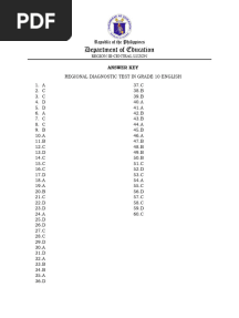Answer Key - RDA - Grade 10 EnglishPDFAnswer Key - RDA - Grade 10 EnglishAdded by ETHELV100% (1)function cn(e,t){var n=e+t;return n<=0?0:Math.round(e/n*100)}% found this document usefulSave Answer Key - RDA - Grade 10 English for later