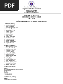 List of Players Cluster 5 MeetPDFList of Players Cluster 5 MeetAdded by memjee30 ratingsfunction cn(e,t){var n=e+t;return n<=0?0:Math.round(e/n*100)}% found this document usefulSave List of Players Cluster 5 Meet for later