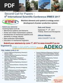 Call for Papers: IRMES 2017 ConferencePDFCall for Papers: IRMES 2017 ConferenceAdded by radoslavtomovic10 ratingsfunction cn(e,t){var n=e+t;return n<=0?0:Math.round(e/n*100)}% found this document usefulSave Call for Papers: IRMES 2017 Conference for later