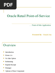 Oracle Retail Point-of-Service GuidePDFOracle Retail Point-of-Service GuideAdded by Manish0 ratingsfunction cn(e,t){var n=e+t;return n<=0?0:Math.round(e/n*100)}% found this document usefulSave Oracle Retail Point-of-Service Guide for later