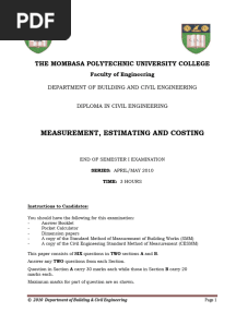 Ecv 2206 Ecv 2300 Ecc 1207 Civil Engineering Quantities and Cost Estimstion