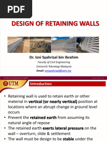 Lecture 5 Design of Retaining Wall PDFPDFLecture 5 Design of Retaining Wall PDFAdded by Afifuddin Azizuddin0 ratingsfunction cn(e,t){var n=e+t;return n<=0?0:Math.round(e/n*100)}% found this document usefulSave Lecture 5 Design of Retaining Wall PDF for later
